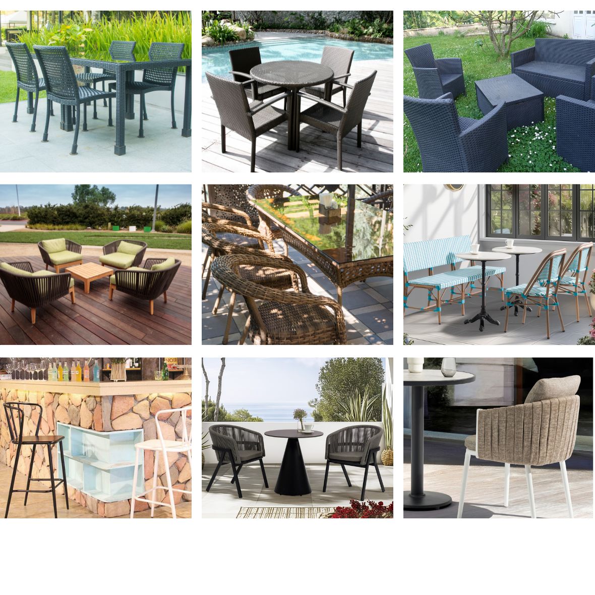 ผู้ผลิตเฟอร์นิเจอร์กลางแจ้ง หวายเทียม เชือกกันน้ำ เตียงอาบแดด โต๊ะอาหาร ชุดโซฟา