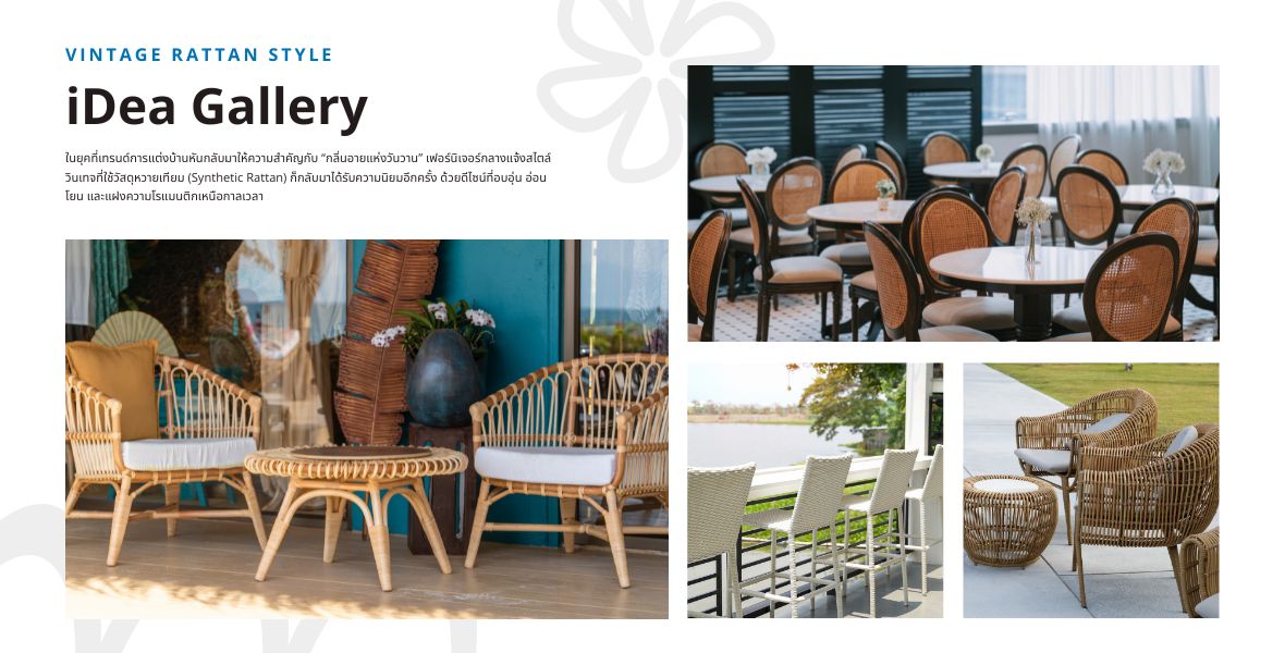 ความงามคลาสสิกที่ทนแดดฝน เฟอร์นิเจอร์กลางแจ้งจาก “หวายเทียม” ได้รับความนิยมอย่างต่อเนื่อง เพราะผสมผสานเสน่ห์แบบธรรมชาติของหวายจริง เข้ากับความทนทานที่เหมาะกับการใช้งานกลางแจ้งในทุกสภาพอากาศ หวายเทียมคืออะไร? หวายเทียม (Synthetic Rattan หร…